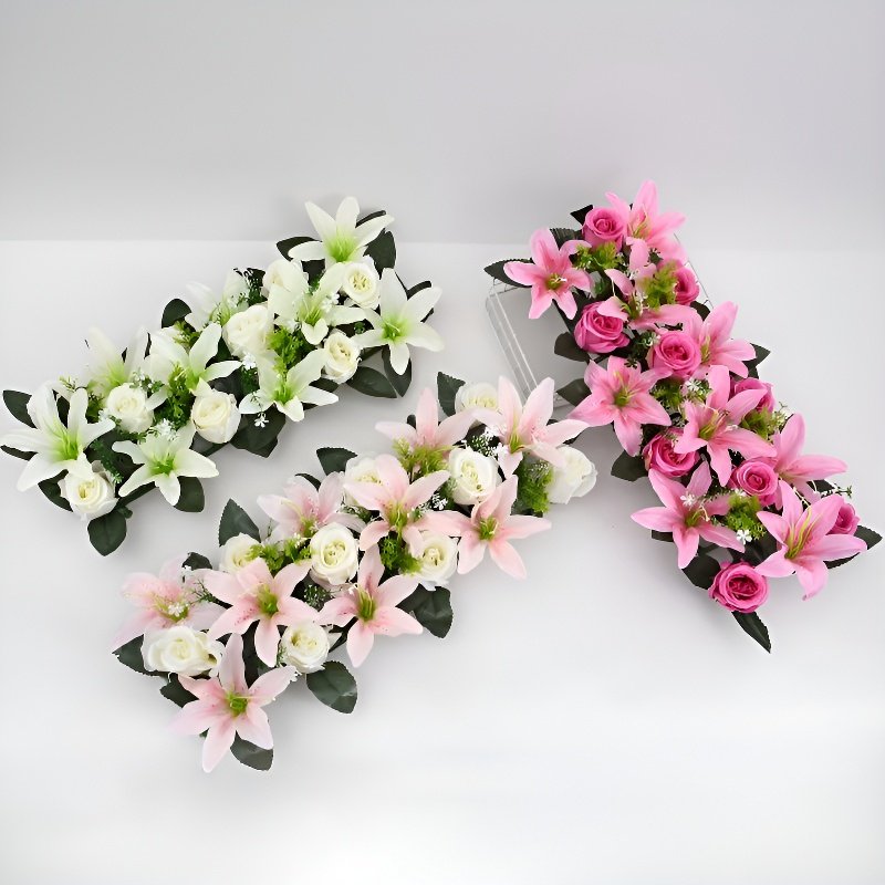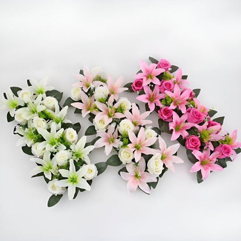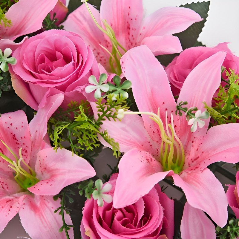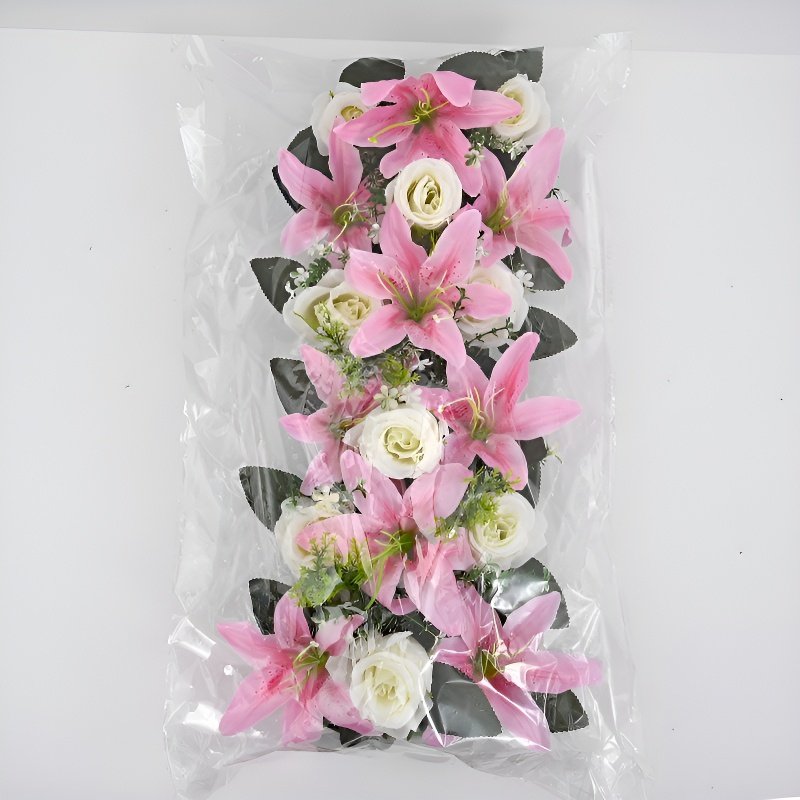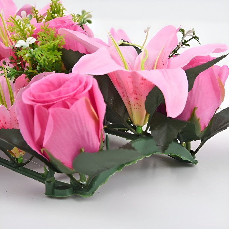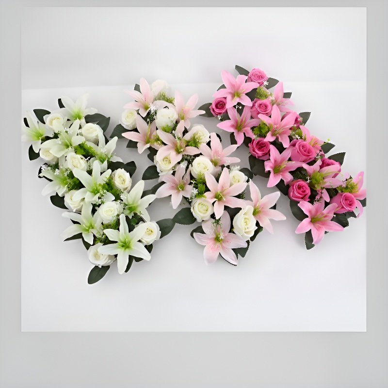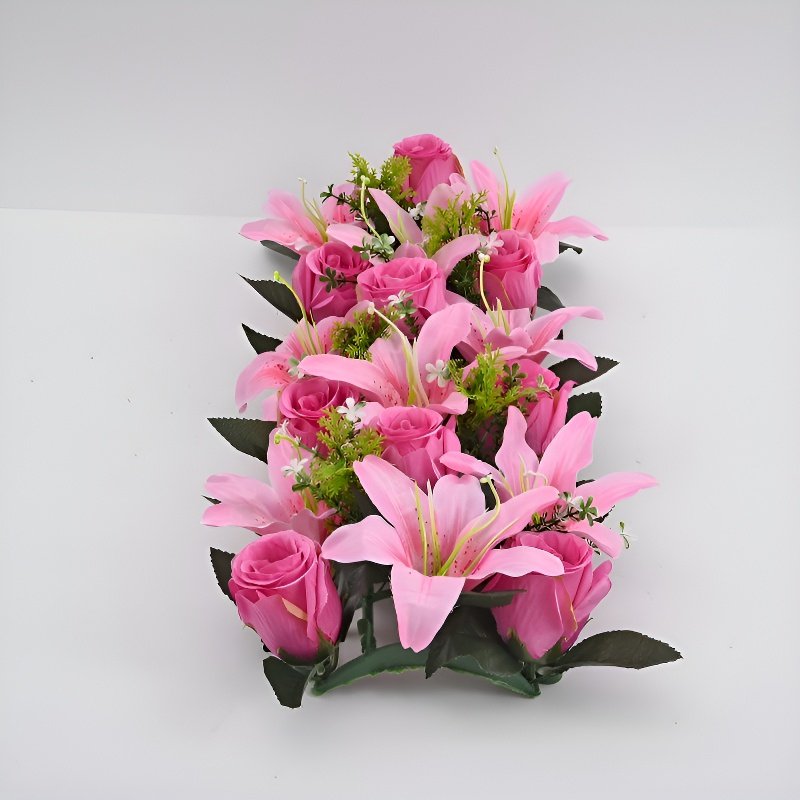 プラスチック製造花バラとユリのセット