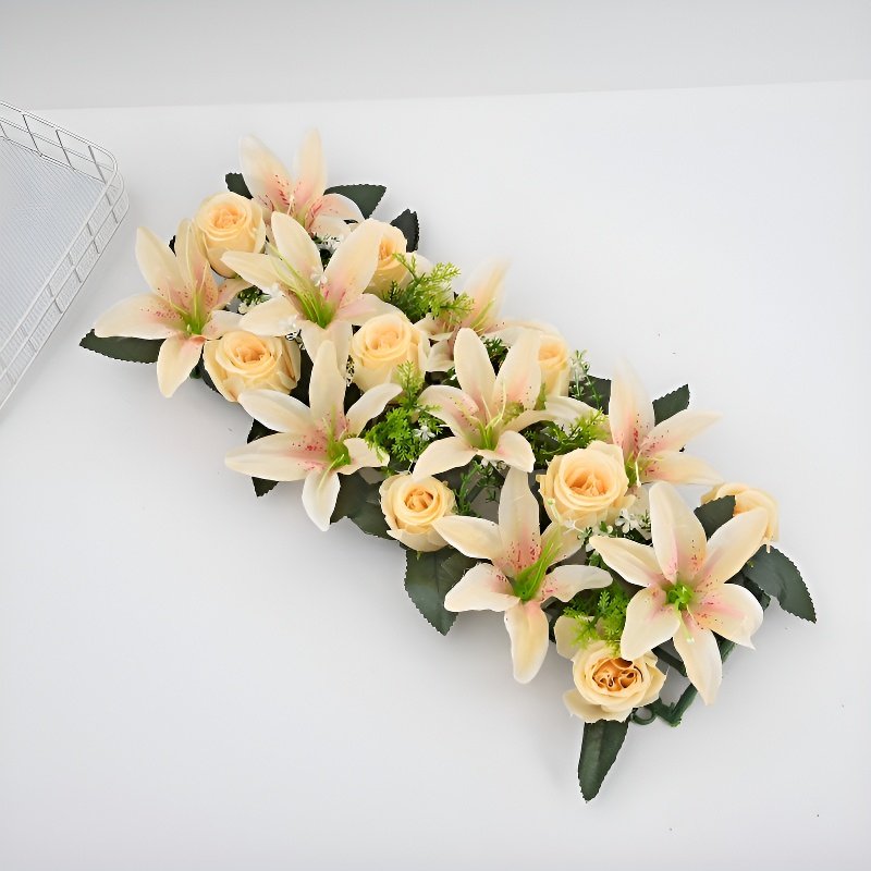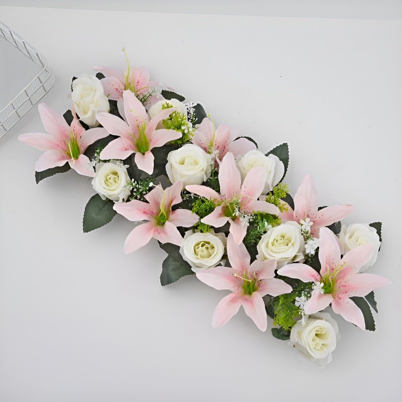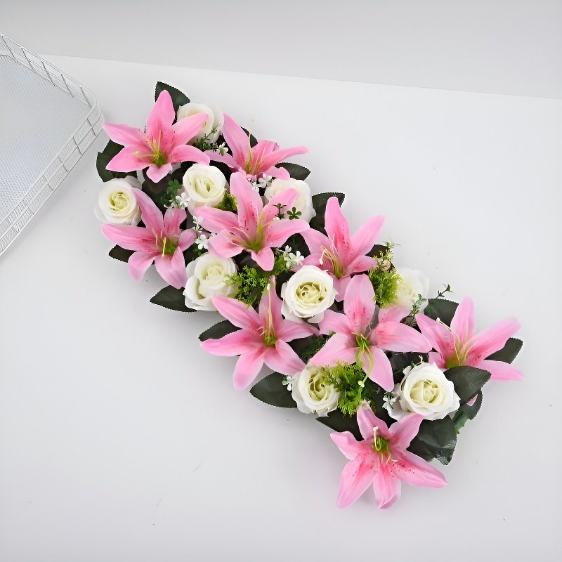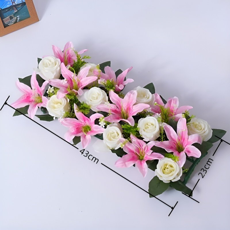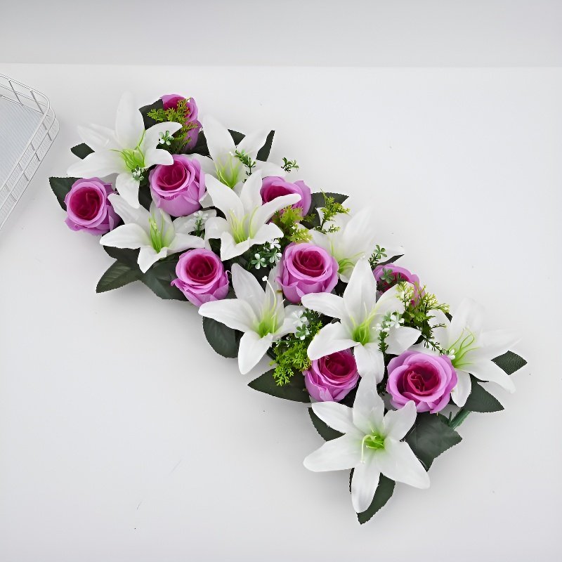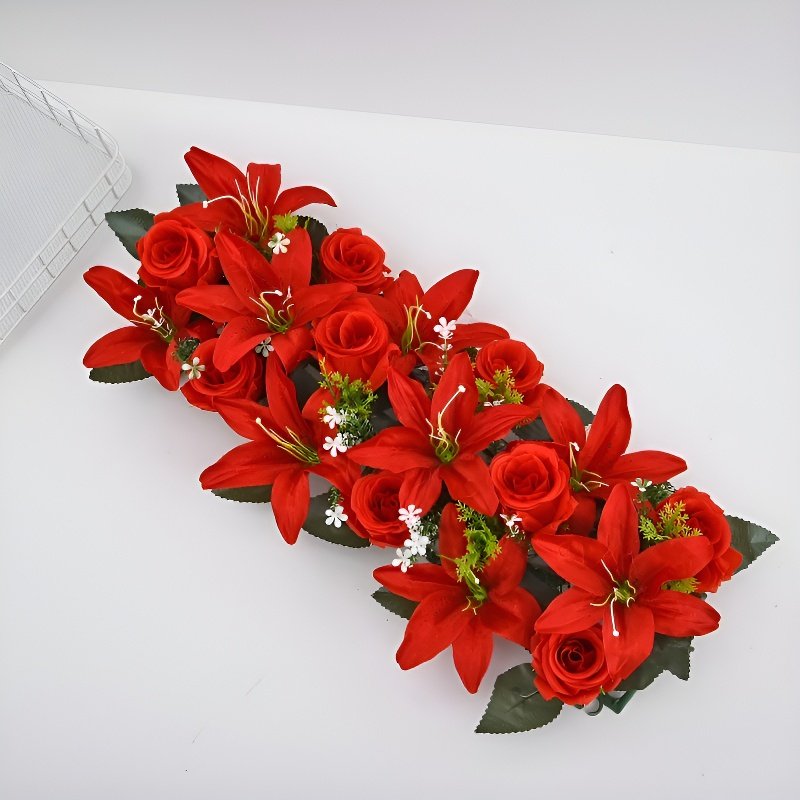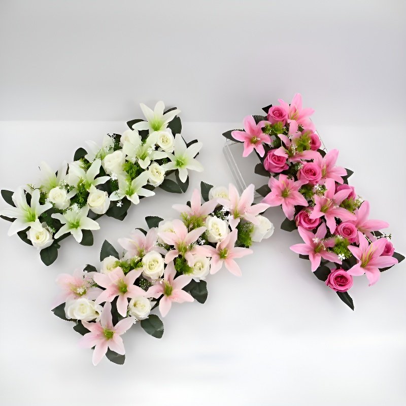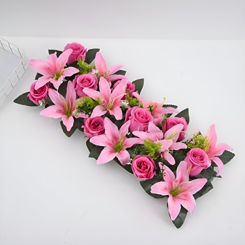 プラスチック製造花バラとユリのセット